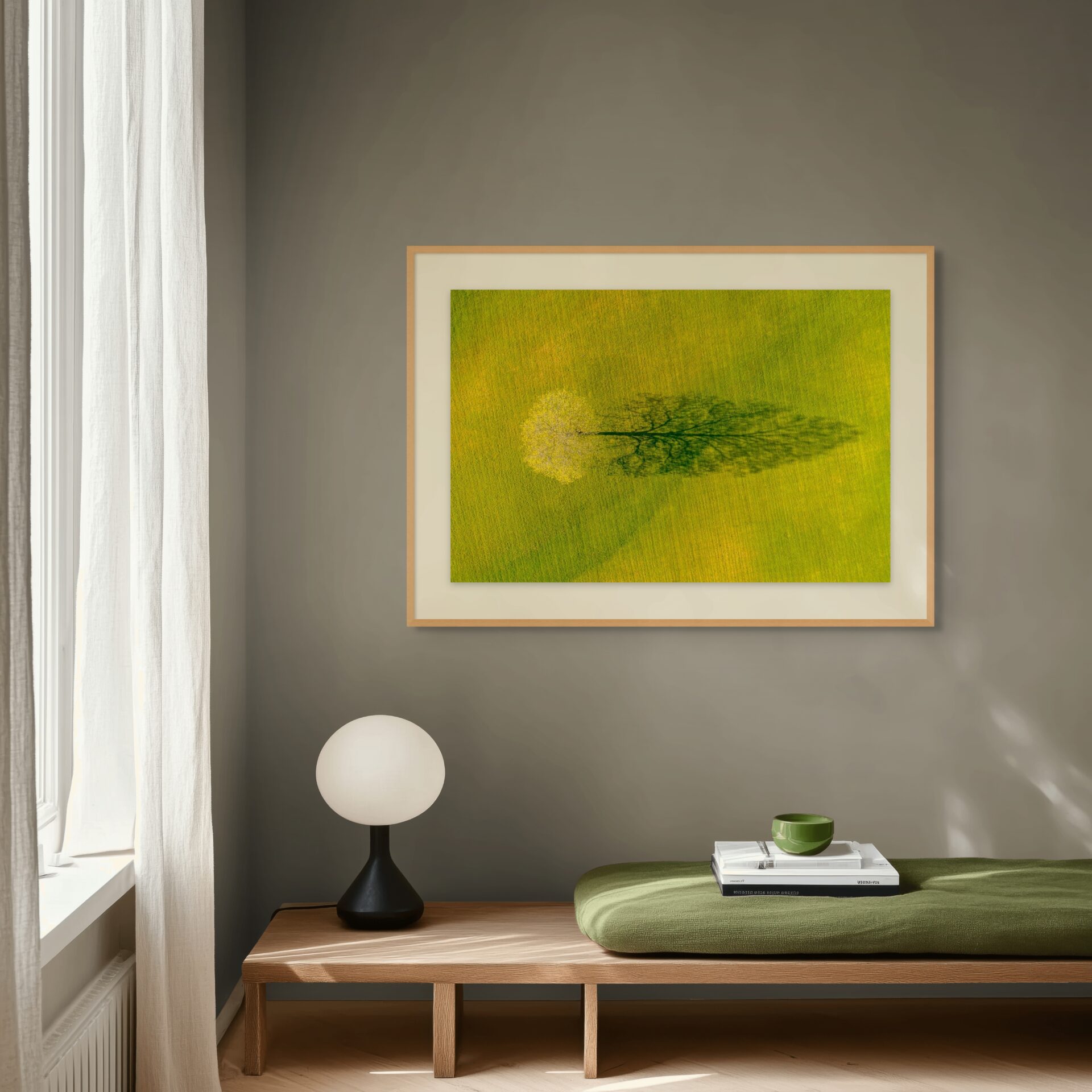 Spring sunlight casts a shadow of a lone tree at the University of Vermont Morgan Horse Farm in Weybridge, Vermont