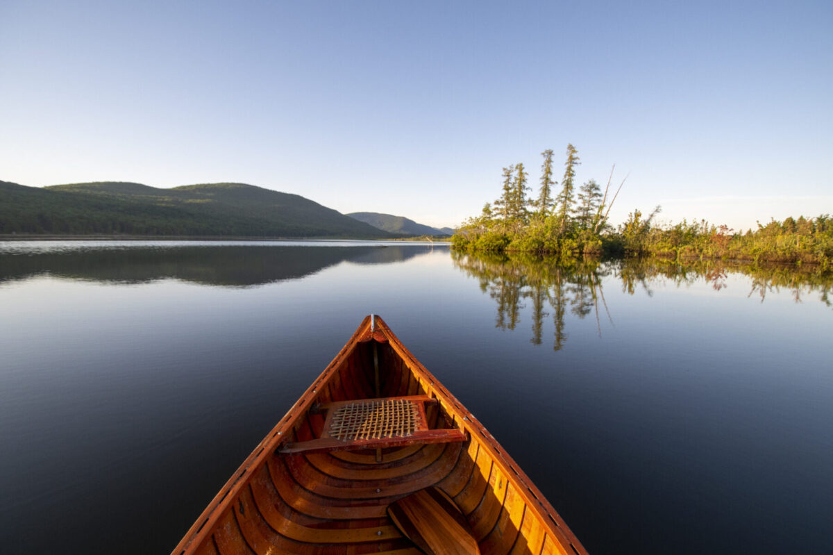 Wood and canvas canoe on Bristol Pond, Vermont